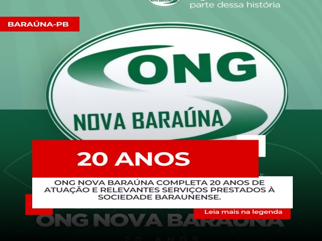 ONG Nova Baraúna completa 20 anos de serviços relevantes prestados à sociedade baraunense.